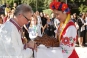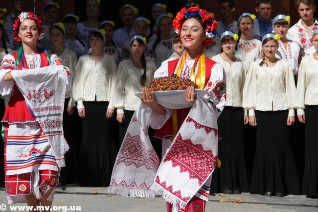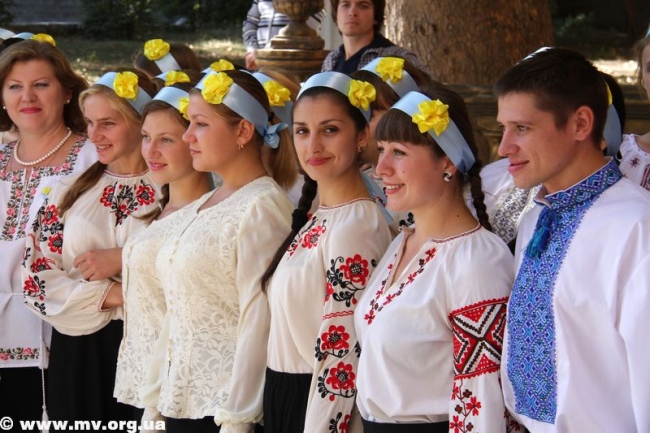 Духовный гимн «Боже великий, єдиний, нам Україну храни» исполнили сводный хор МГПУ, представители национально-культурных обществ города и солисты детской школы искусств под руководством дирижера Натальи Сегеды. На последних нотах песни в небо взлетели голуби мира.
