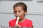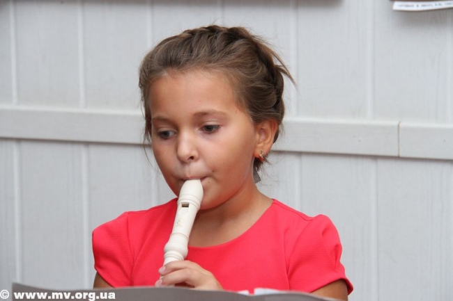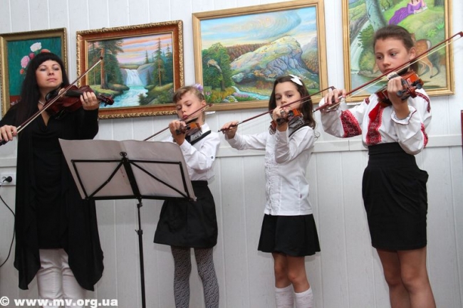 На праздник к юным художникам и дизайнерам пришли их поздравить ровесники из клуба "Факел" и Детской музыкальной школы №1. Ученица первого класса Эвелина Семенюк исполнила на скрипке два произведения: серьезное - композитора Гайдна и веселое - народную песенку "Перепелочка". А Даниэла Мелихова порадовала слушателей исполнением на блокфлейте песен "Ой, на горе" и "На улице скрипка играет". Громкие аплодисменты сорвал ансамбль скрипачей в составе сестер Ульяны и Софии Попович и Полины Семеновой. Юным музыкантам помогали руководитель Ангелина Мелихова и концертмейстер Ольга Наливайко.