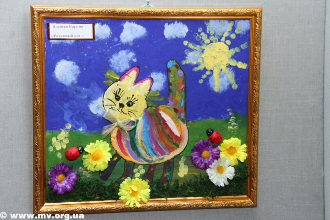 Пятилетняя Карина Носенко представила на выставку свою работу "Радужный кот" - яркую, наполненную сочными цветами и радостным настроением. По словам ее мамы Светланы Анатольевны, в студию "Вилория" они отдали малышку, когда ей не было еще и 4-х лет. Но девочке очень нравится здесь заниматься, фантазировать, творить. Карина посещает также занятия по хореографии и вокалу, и еще не выбрала, что ей больше по душе. Но, как считает мама, знания и умения - за плечами не носить, все это обязательно пригодится на жизненном пути ребенка.