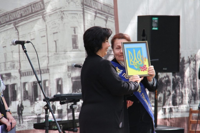 С теплыми словами поздравлений с 230-м днем рождения города к собравшимся обратились депутат областного совета Владимир Кюрчев, и.о.мэра Сергей Минько, почетный гражданин Мелитополя Миневер Идрисова. Миневер-ханум передала в дар Мелитопольскому краеведческому музею вышитые ее ученицей Дианой Усовой символы украинского государства: тризуб, калину на фоне желто-синего стяга. Подарок приняла директор МКМ Лейла Ибрагимова.
