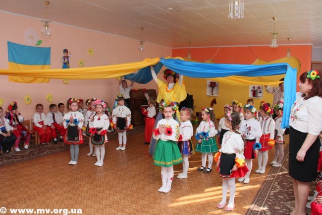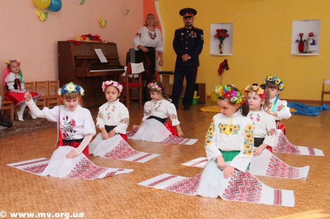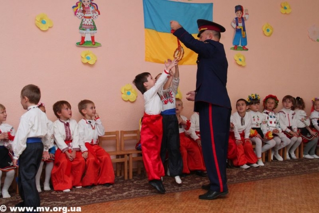 Детвора гордо маршировали по большому залу музыкальной комнаты: мальчишки все как один в алых шароварах и вышиванках, девчонки – в расшитых сорочках и пышных веночках. Ребята с таким энтузиазмом выполняли задания атамана Мелитопольского куреня Запорожского Войска Низового Игоря Лысенко: перетягивали канат, участвовали в перегонах на «лошадях», возводили сигнальные крепости, да даже в прыжку ловили сладкий бублик. Девчонки же, маленькие украиночки, «вышивали» рушник и воспевали «мамину сорочку».