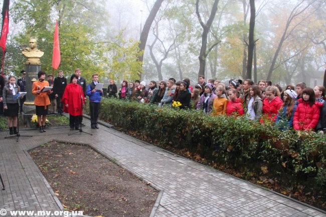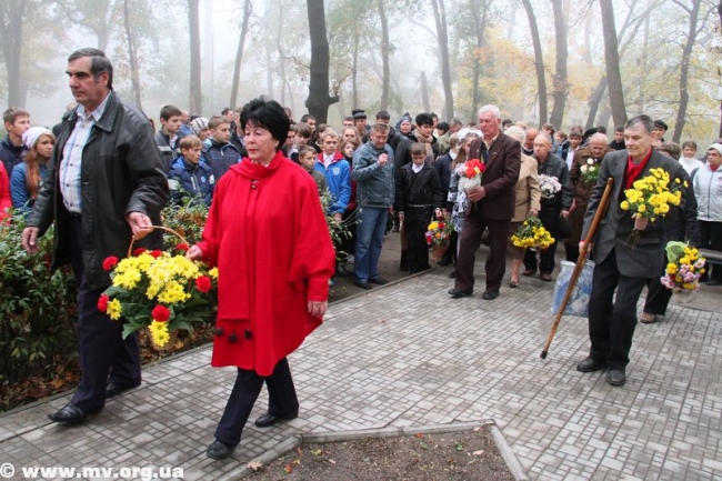 Часом позже ветераны, школьники, представители городской власти почтили память воинов, погибших при освобождении нашего города на митинге на мемориальном кладбище на ул. Пионерской. А в середине дня букеты осенних цветов легли к подножию памятника "Героям-подпольщикам" на пр. Б. Хмельницкого.
