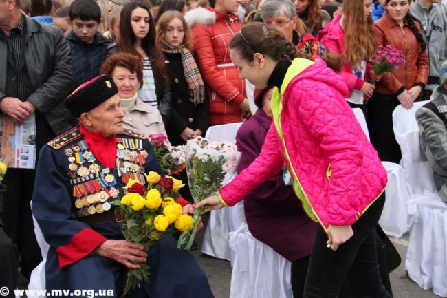 Мало осталось ветеранов Великой Отечественной войны, которые самостоятельно в состоянии пройти в колонне от площади Победы до площади Кирова и мемориального комплекса "Братское кладбище". Поэтому в этом году от этой традиции и "живого коридора" из школьников отказались, а ветеранов встречали уже непосредственно у танка, усаживали на подготовленные стулья. Над каждым ветераном взяли шефство представители Красного Креста, учащиеся медколледжа. Над площадью прозвучали аплодисменты, когда на митинг пришел, собрав все силы и мужество, наш земляк, Герой Советского Союза Николай Лобачев, получивший свое звание в боях за освобождение Украины. Аплодисментами молодежь встретила и фронтовика, почетного гражданина Мелитополя, учителя с большой буквы Николая Голофаста.