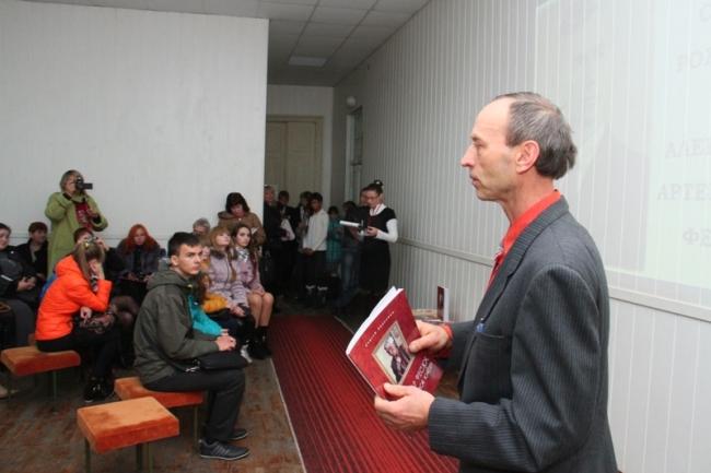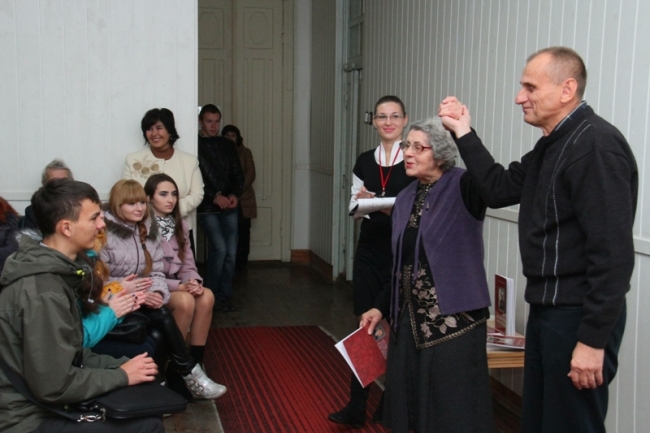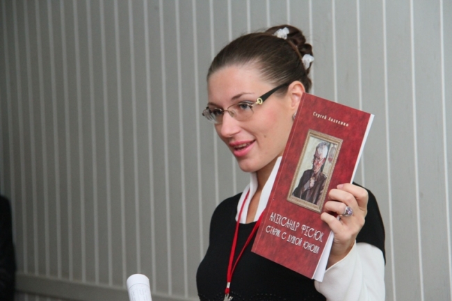 А помогли ей в этом преподаватели Детской музыкальной школы №1 Александр Демьяненко и Екатерина Вальсамакина, исполнившие романс на стихи А. Фесюка "Не осыпайтесь хризантемы", воспитанники театрального отделения Детской школы искусств под руководством завотделением Елены Соболевой, которые выступили с литературными композициями, воспитанница ДШИ Яна Самухова с песней "Закаты алые". Волнительными и душевными были воспоминания дочери А. Фесюка Ольги Александровны, воспитанника Александра Артемьевича, а ныне преподавателя Детской художественной школы Сергея Михно, коллег А. Фесюка - учителей гимназии 5 и СШ-25 Майи Зборовской и Нины Журбий. Неожиданным стало видеобращение Виктора Ревы, который 17 лет проработал преподавателем в МГПУ, автором оркестровой, вокально-хоровой, инструментальной музыки. Виктор Яковлевич хорошо знал Фесюка, написал три романса на его стихи. Сейчас В. Рева живет в Селидово (Донецкая обл.). Научный сотрудник музея Валерий Тимофеев передал ему на рецензию новую книгу мелитопольского писателя С. Авдеенко "А. Фесюк. Старик с душой юноши" и отзыв Виктора Яковлевича был восторженным: "Сергей Авдеенко этой книгой поставил замечательный памятник Фесюку. За это ему низкий поклон!"