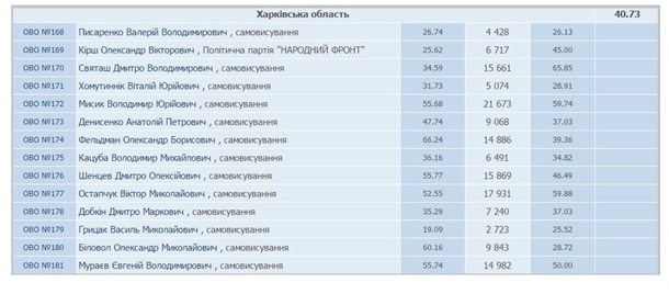 Лишь на харьковском округе №169 на данный момент лидирует не экс-регионал, а представитель "Народного фронта".