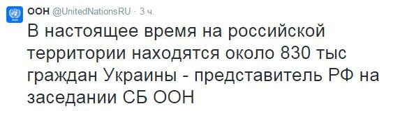 В России находится около 830 тысяч беженцев из Украины. Об этом на заседании Совета безопасности ООН заявил постоянный представитель РФ Евгений Загайнов, передает пресс-служба ООН в Twitter.