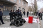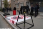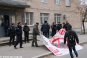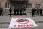 Молодые люди держат плакаты со своими требованиями. Кроме того, возле здания суда сложили старые автомобильные покрышки. Судя по наличию рядом огнетушителей, не исключена возможность их поджога. Усиленный наряд правоохранителей, охраняющих суд, в происходящее пока не вмешивается и продолжает стоять в оцеплении возле здания.