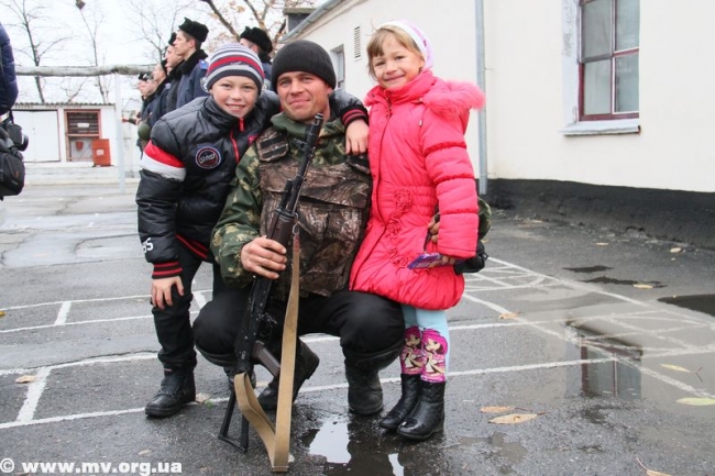 Сразу двое улыбающихся детей – сын и дочь ждали сегодня и командира подразделения, вернувшегося из АТО – Ивана Целикова.