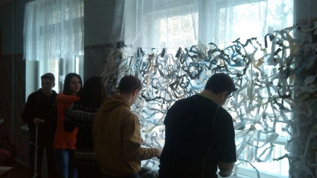 Первым делом сети плетут для военных мелитопольского подразделения Нацгвардии (второго батальона ВЧ 3033). Этим ребят предстоит в скором времени отправиться в зону АТО, и они сами обратились к школьникам с просьбой помочь сплести защиту. Сетку размером 7 на 4 метра дети уже сплели наполовину. Работа кипит каждую перемену, каждый желающий может присоединиться.