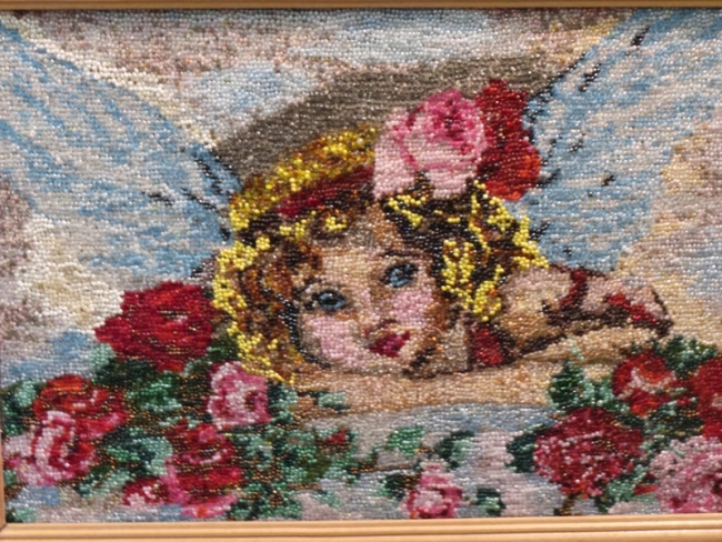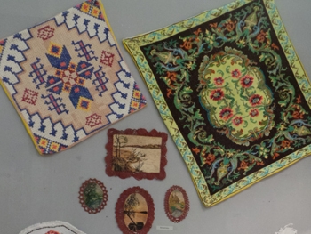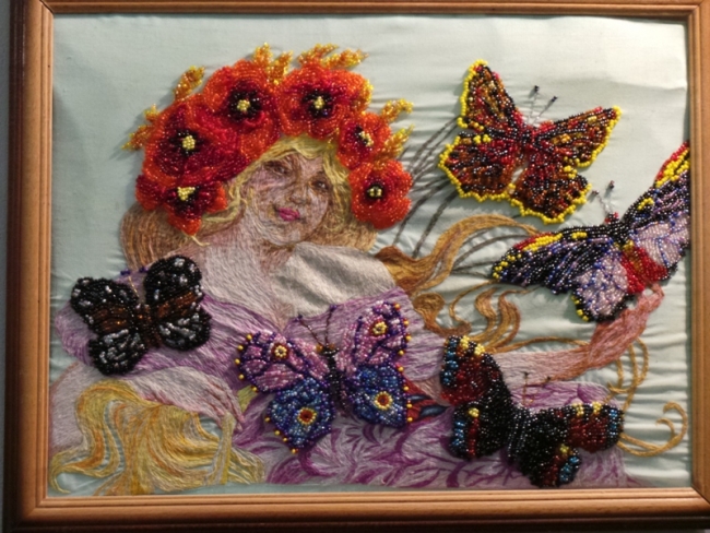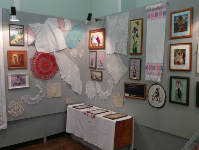 В экспозиции мастера декоративно-прикладного искусства Анны Мирошниченко представлено около 200 оригинальных работ. Анна Натановна занимается рукоделием с 1982 года. Первые ее работы - вышитые крестом картины, подушки, рушники. Позже мастерица освоила вязание крючком, а с 1998 года освоила технику "художественная гладь". Интересно, что Анна Натановна иглой и нитками создала "репродукции" картин известных художников Крамского, Врубеля, Брюллова, Маковского, Боровиковского, Васильева. Проживая в Магаданской области, в 1998 году она стала участницей выставки народных умельцев Хасынского района. С 1999 года мастерица живет в Мелитополе.