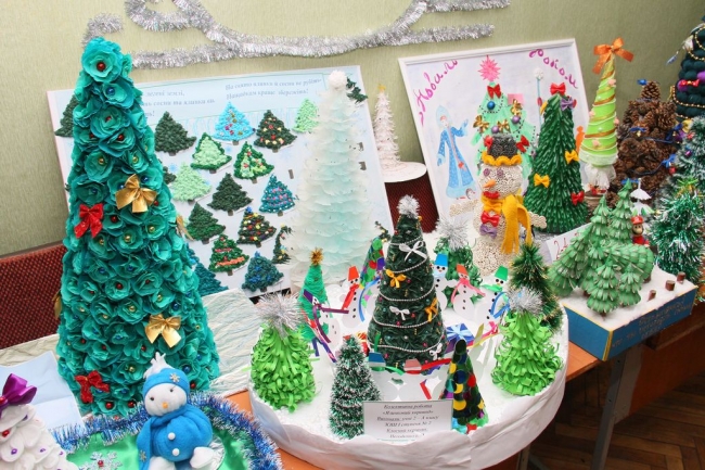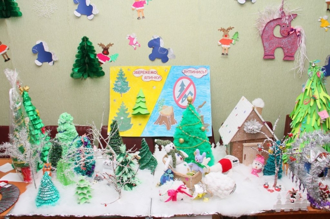 Ребята со своими классными руководителями творчески подошли к выполнению заданий, удивив Фею Экологии как своими великолепными отчетами о проделанной работе, так и листовками и поделками. В ЦЭНТУМ организовали выставку елочек, экспонаты которой поражают красотой, фантазией, мастерством выполнения. Каких только елочек здесь нет: из пластиковых бутылок и стаканчиков, перьев и макаронных изделий, цветной бумаги и ткани, фатина и дождика, елочка из обведенных на бумаге детских ручек. Есть целые новогодние композиции, среди которых самой большой является композиция, созданная учениками 2-Б класса ООШ-24.