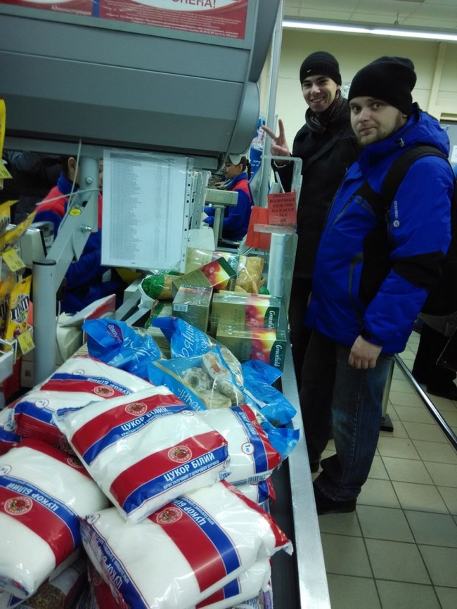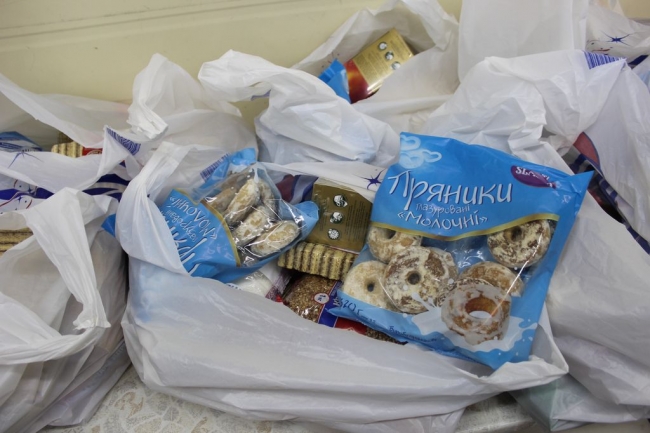 Закупив провизию в местном супермаркете, волонтеры обошли квартиры 4 ветеранов авиагородка и 5 - в районе ж.д. вокзала. Суммы в 700 грн., выделенной организацией, хватило чтобы собрать 9 пакетов с гостинцами (гречка, сахар, макароны, чай, пряники, вафли).