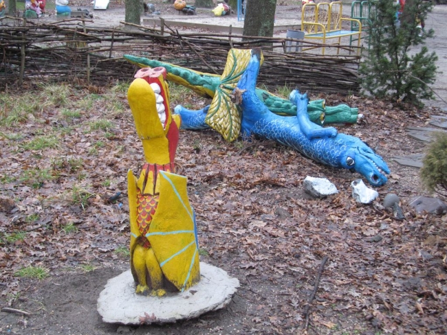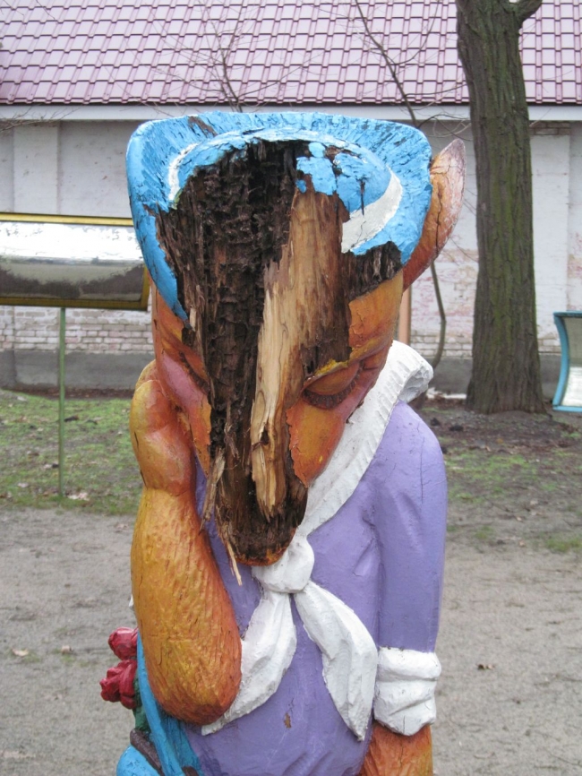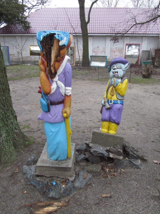 - Инцидент произошел сегодня утром, с 6 до 8 часов. Я не знаю, насколько нужно быть жестоким человеком, чтобы так варварски изуродовать детскую площадку. Некоторые фигуры и так находились в не самом лучшем состоянии, теперь они и вовсе испорчены. Конечно, мы проявим максимум усилий по их реставрации, но я не до конца уверен, что всех сказочных персонажей можно спасти. На моей памяти не было столь кощунственных и бессовестных актов вандализма. Да, парк периодически подвергается налетам хулиганов, но детские площадки зачастую не страдают, - рассказывает заместитель директора КП «Парк культуры и отдыха им. М. Горького» Сергей Пушкин.