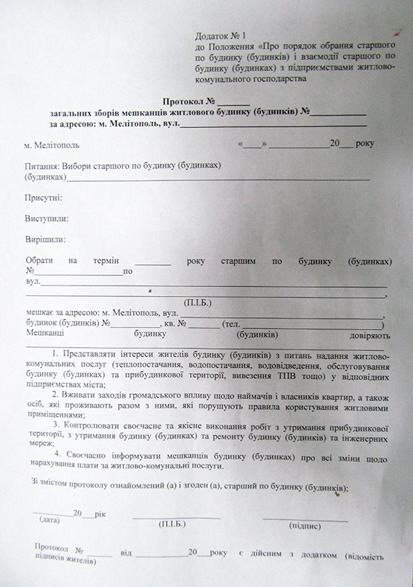 - Мы возобновляем договорные отношения со старшими по домам, следственно, что наши прошлые договоры утратили свою законную силу. Но, кроме подписания самого договора, в положении утвержденным местным органом самоуправления прописана необходимость раз в два года утверждать старшего по дому путем проведения общего собрания жильцов дома. Кроме того, в приложении к этому положению есть форма протокола такого собрания. Мы решили своими силами отпечатать эти протоколы, чтобы они имели одинаковый вид. Но, это не значит что мы затеваем какого-либо рода перемены в устоявшейся иерархии дома. Нет. Это просто формальная процедура которую мы выполняем в рамках существующих норм законодательства. На сегодня договоры уже составлены со всеми старшими по дому, за исключением 29-ти отказавшихся от сотрудничества с нашим предприятием. Не стоит полагать что отказ связан с уменьшением льгот для старших по дому, от сотрудничества с нами они отказывались и в прошлом, - прокомментировал замдиректора предприятия по экономике и сбыту Валерий Сучок.