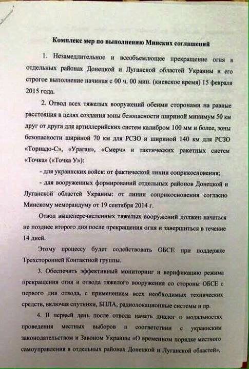 - незамедлительное прекращение огня в отдельных районах Донецкой и Луганской областей и его строгое выполнение начиная с 00:00 мин 15 февраля;