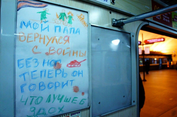 23 февраля, в "день защитника отечества", в вагонах петербургского метро было расклеено несколько серий антивоенных плакатов. Информацию об этом передает Грани.Ру.