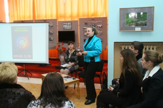 Поздравить Светлану Владимировну с выходом новой книги в краеведческий музей пришли члены ЛИТО, ее близкие и друзья, поклонники творчества поэтессы и прозаика. Ведущая презентации научный сотрудник музея Екатерина Колодий сначала представила творческую "визитку" С. Непомнящей. Удивительно, но уже в 12 лет она написала свое первое стихотворение. Однако, по окончании школы девушка выбрала не гуманитарный, а технический вуз - поступила на ремонтный факультет МИМСХа. При поступлении она сразила членов приемной комиссии тем, что сочинение написала в стихах. Тогда ее вызвал декан ремонтного факультета и предложил еще раз серьезно подумать над выбором вуза и будущей профессии. Но Светлана мудро ему ответила, что можно писать стихи и при этом работать инженером, но нельзя, имея литературное образование, работать инженером. А ей нравилось и то, и другое.