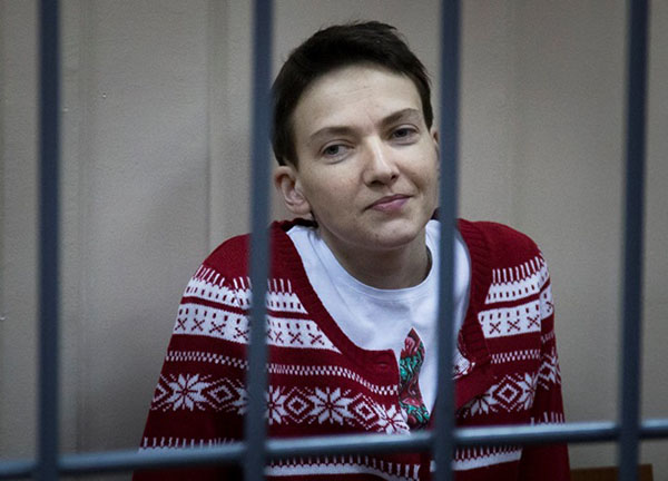 Народный депутат Украины, летчица и представитель Украины в Парламентской ассамблее Совета Европы удерживается в российском СИЗО с лета 2014 года. Надежда Савченко голодает, протестуя против незаконности ее ареста и требуя возвращения на родину. Она употребляет лишь воду и чай, сильно похудела и у нее, по словам адвокатов, начались проблемы со здоровьем. Президент Петр Порошенко присвоил Савченко звание Героя Украины.