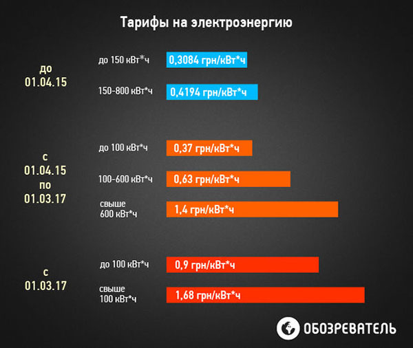 3) свыше 600 кВт/ч в месяц - 1,4 грн за кВт/ч