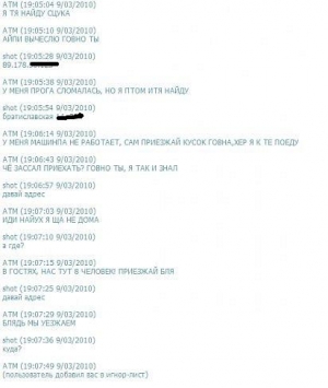 ххх:- у меня машина не заводится, сам приезжай кусок гомна!!! хер я к те поеду!!! чё зассал приехать пидр ты, я так и знал))))