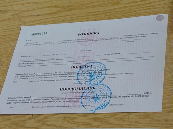 Мелитопольцев будут мобилизовать особенными повестками (Фото)
