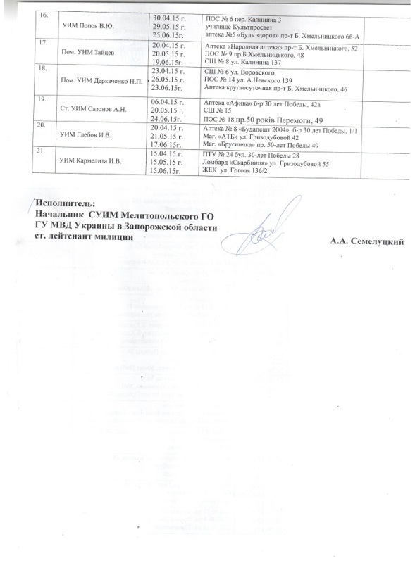В милиции утвердили и согласовали с исполкомом график встреч мелитопольских участковых милиционеров с гражданами.