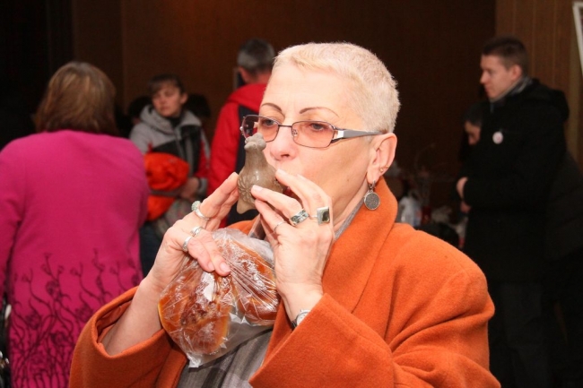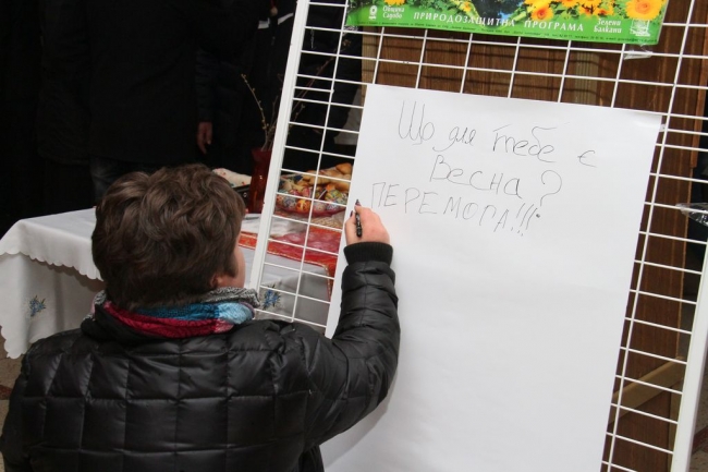 В фойе ДК им. Т. Шевченко развернулась благотворительная ярмарка. Глаза разбегались от количества замечательных вещиц, сделанных руками наших мастеров: изделия из бисера, поделки в технике декупаж, плетеные из бумаги, лент, вырезанные лобзиком, куклы-мотанки, обереги, брелоки, приятные сувениры и милые подарки для родных и друзей. У хозяюшек из общественной организации "Кухарочка", обычно готовящих сухие борщевые смеси для военнослужащих в АТО, можно было купить вкусные печеньки и пряники в виде жаворонков. Все собранные в ходе ярмарки средства волонтеры направят на нужды бойцов АТО и переселенцев из Донецкой и Луганской областей.