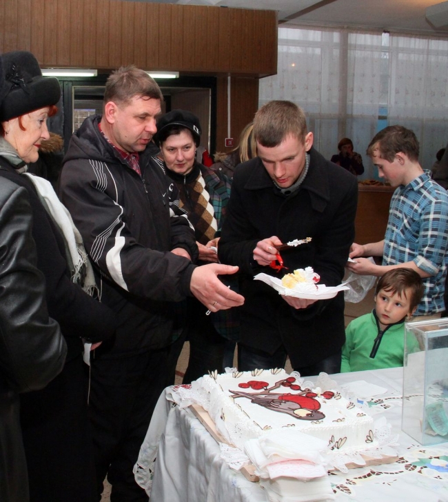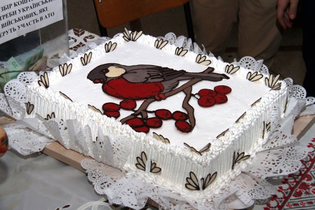 Всем очень запомнился кулинарный шедевр от кондитерской фабрики "Фантазия" - торт, украшенный изображением снегиря. Как отметила координатор Совета волонтеров Мелитополя Надежда Дребот, этот рисунок организаторы праздника попросили кондитеров нанести не случайно. Всех украинцев очень насмешила очередная страшилка российской пропаганды о том, что в наших школах детей призывают подкармливать патриотичных желто-синих синичек и убивать российских снегирей. Для поддержания пропагандистской "утки" и для поднятия настроения торт со снегирем был порезан на кусочки, и детвора и взрослые с удовольствием его продегустировали.