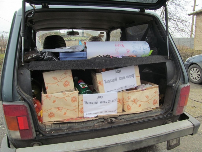 Несколько коробок с консервацией, продуктами длительного хранения, предметами гигиены, а также рисунки и поделки от самых маленьких вознесеновцев сегодня передали волонтерам группы "Небайдужі".