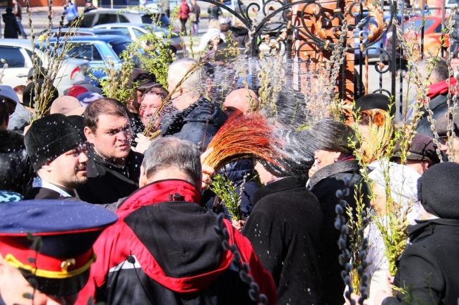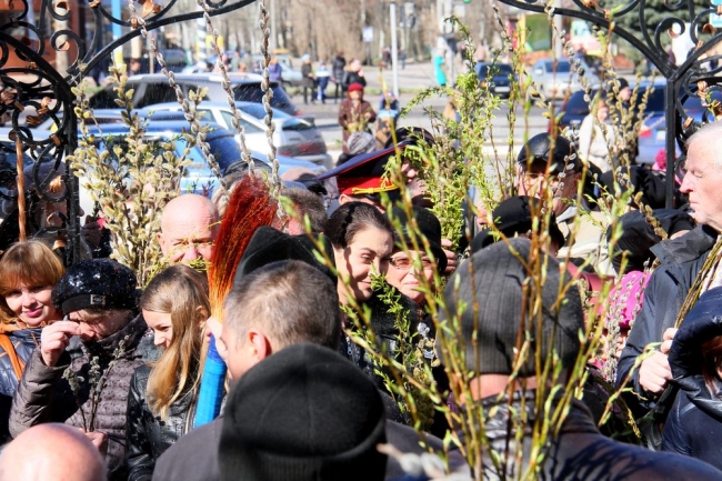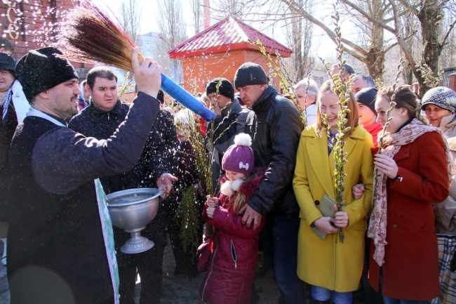 В храмах Мелитополя уже прошла торжественная божественная литургия и проводится обряд освящения веточек вербы. В храме во имя св. Георгия Победоносца, завершая праздничное богослужение, благочинный церквей Мелитополя, настоятель Свято-Георгиевского храма протоиерей Максим Смирнов обратился к прихожанам, отметив, что желает им, чтобы их сердца были Иерусалимом, в который вошел Христос и остался в них навсегда. Чтобы их вера была крепка, в сердцах царила любовь, и они не уподобились жителям Вечного города в том, что сначала многие из них восклицали: «Осанна!» при виде Иисуса, въезжающего в город, а через несколько дней они, ослепленные ненавистью, поддавшись эмоциям толпы, кричали: «Распни!».