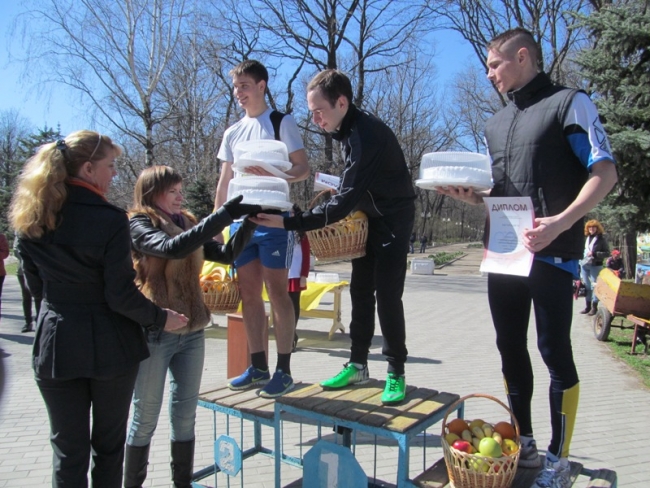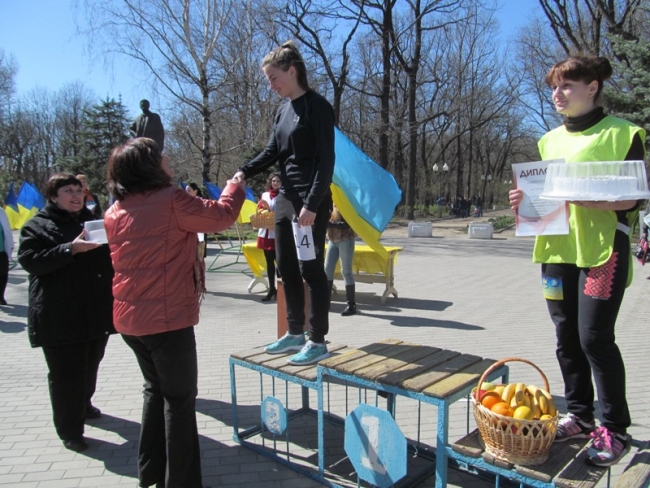 Организаторы акции - представители городского руководства, Мелитопольской первичной горрайонной организации Национального союза журналистов Украины, благотворительной организации "Сияние надежды" и городского общества Красного Креста наградили победителей и призеров не только дипломами, но и сладкими призами и корзинами с фруктами. Управделами исполкома Елена Дубинина вручила диплом и приз самой юной участнице пробега пятилетней Софии Кравцовой.