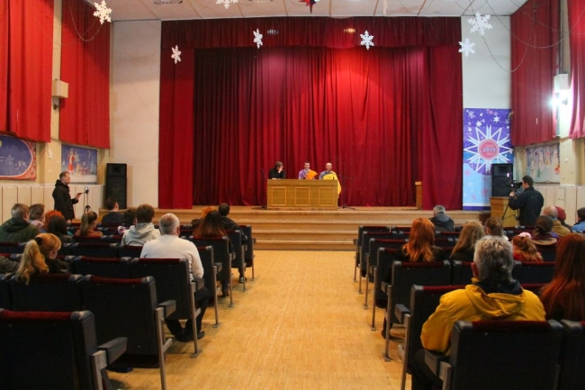 15 апреля в малом зале ДК им. Т. Шевченко странствующий буддийский монах, учитель Ордена Ниппондзан Меходзи, величайший миротворец современности Дзюнсэй Тэрасава пообщался с мелитопольцами.