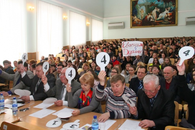 По словам организаторов конкурса – педагогов кафедры педагогики и педмастерства, конкурс проходит в два этапа. И начинается он еще на этапе практики, которую студенты-старшекурсники проходят в школах и детских садах. Конкурсанты должны провести урок и воспитательный час в вверенным им классах, работают так, чтобы заработать положительные отклики педагогов и руководства школы, учеников и их родителей, готовят наглядные пособия и пр. Все их старания и наработки оценивают жюри и только лучших из лучших допускают до участия в финале.