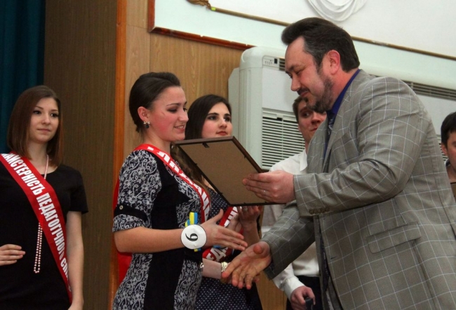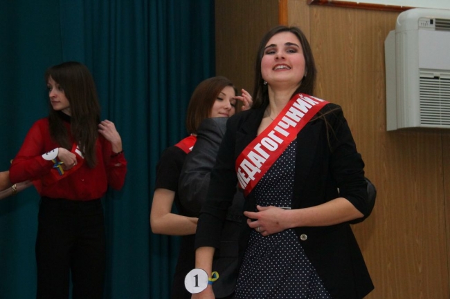 На сцене девушкам пришлось поволноваться, ведь им нужно было не просто хорошо выглядеть, а блистать, как профессионалу, будущему педагогу, который знает, любит, понимает детей и готов посвятить все свое время. Студентки презентовали себя в стихах, прозе и песнях, искали выход из непростых ситуаций, которые могут возникнуть на уроке или перемене, а также рекламировали свою профессию – с песнями, слайдами, театрализованными постановками.