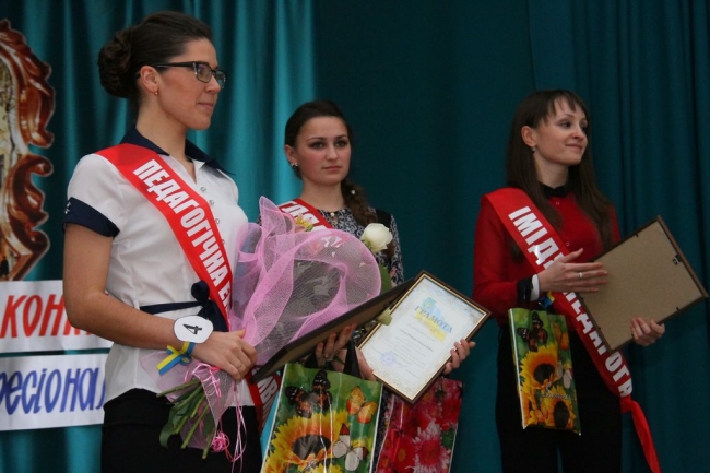 По итогам конкурса все конкурсантки получили заслуженные ленты и титулы «Имидж педагога» – Ирина Рыжих, «Мастерство педагогического общения» – Евгения Дурман, «Педагогический артистизм» – Юлия Чиликина, «Педагогическая фантазия» – Екатерина Курносова, «Педагогическая эксклюзивность» – Виктория Курилюк и «Зрительские симпатии» – Татьяна Садовая. Главную награду конкурса и ленту «Я – учитель-профессионал» завоевала Е. Дурман – математик, которая уверена, что числа помогают человеку править миром.