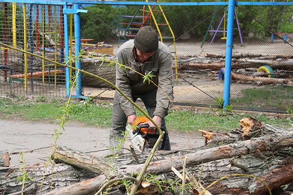 Сносом аварийных деревьев С. Кизилов занимается не первый год и уже сбился со счета, сколько всего их было: перестал считать, когда число перевалило за семь сотен.