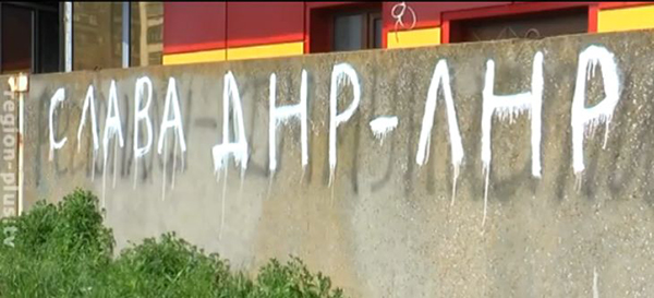 23 апреля на бетонном заборе недалеко от кафе «Эребуни», что на ул. Воинов-интернационалистов появились надписи прославляющие самопровозглашенные ДНР и ЛНР и выставляющие в негативном свете Президента Украины Петра Порошенко. Местные жители утверждают, что надписи появились ночью, и относятся к этому негативно, сообщает сайт телекомпании «МТВ-плюс».