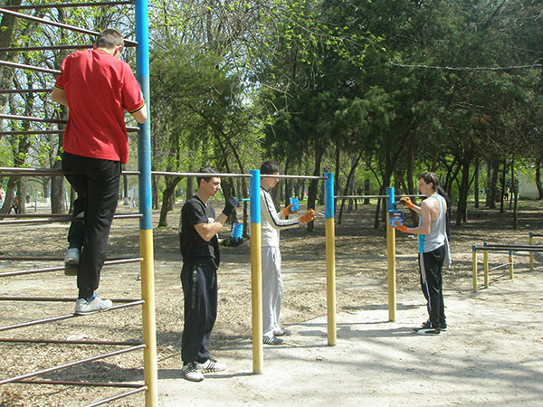 По словам директора городского центра физического здоровья населения, заместителя директора ЦДЮТ Валентины Гурьевой, в рамках проходящего в апреле всеукраинского месячника по обустройству спортплощадок "Спорт для всех - общая забота" 25 апреля любители стрит-воркаута Дмитрий Иванисов, Алексей Шелконогов, Богдан Кавинский, Александр Малыгин и Дмитрий Нема покрасили гимнастическое оборудование на спортплощадке в парке культуры и отдыха им. Горького.