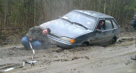 В Карелии казусом завершился автопробег, посвященный 70-летию Победы: большинство участников не смогли добраться до конечной точки, завязнув в грязи на дорогах Лахденпохского района.