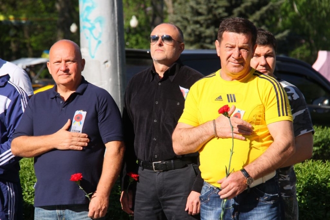 Кроме того, у каждого на машине национальные флаги, а на груди ленты с красными маками - украинским символом Дня памяти примирения.
