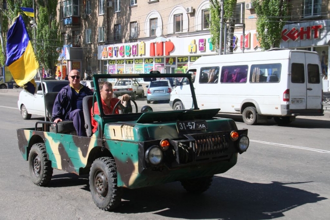 Автопробег проехал по центральному проспекту Мелитополя и отправился за город. Первая остановка - в с. Семеновка. С собой участники автопробега взяли знамя, с которым шли в бой советские солдаты, а также флаг Украины, который С. Минько презентовали военнослужащие 93-й бригады.