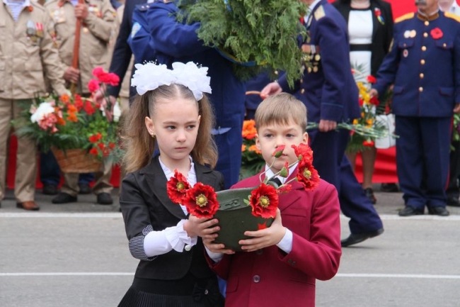 Собравшиеся почтили минутой молчания память о миллионах людей, погибших в годы войны. Светлые и грустные чувства вызвало выступление педагогов Детской музыкальной школы №1 Александра Демьяненко и Ангелины Мелиховой, сердечно и проникновенно исполнивших «Жди меня и я вернусь». Гимном Победы стала песня «День Победы», в исполнении Сергея Сафронова. На последних ее аккордах в небо взлетели шары с цифрой 70.