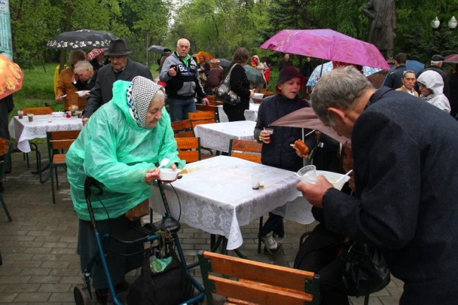 Этот праздник не принес объединения общества: одни празднуют 70-летие Победы над нацизмом в Европе, для других – это день Победы в Великой Отечественной войне, третьи используют святые чувства, чтобы попиариться, четвертые злы на вся и всех и готовы унизить и оскорбить каждого, кто придерживается отличной от их точки зрения. Все это хорошо можно было почувствовать на митинге-реквиеме, который проходил перед входом на мемориал «Братское кладбище» на ул. Кирова.