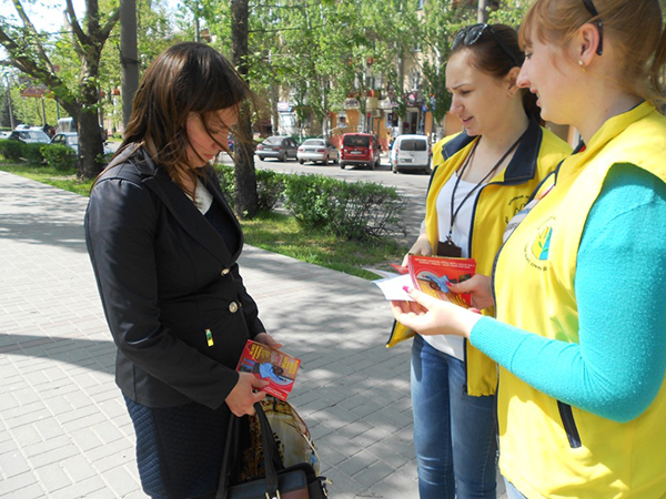 Волонтеры рассказывали прохожим о семейных формах воспитания детей-сирот и детей, лишенных родительской опеки, рассказывали об особенностях функционирования приемных семей, детских домов семейного типа.