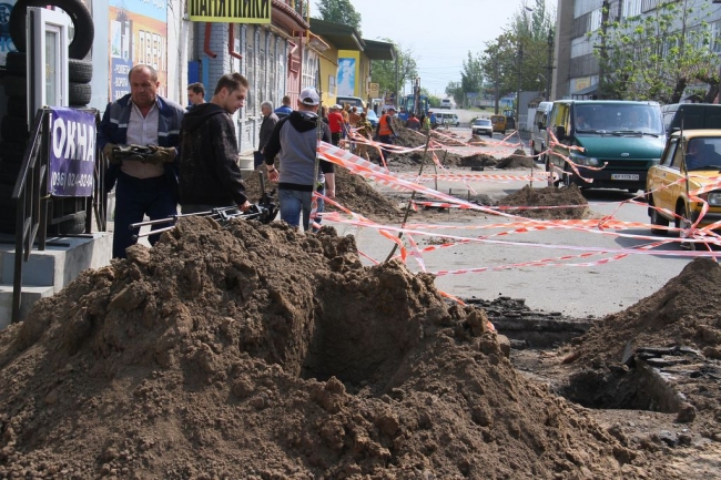 - На этом участке уже было три ямы, связанных с порывом наших сетей. Поэтому когда мы узнали о том, что будет асфальтироваться этот участок трассы, внесли предложение о том, что сперва следует провести замену водопроводных сетей под дорогой, которые, нужно отметить, находятся в плачевном состоянии. Так, нами методом санации будет проложено порядка 200 метров пластиковой трубы. Вскрытие мы произвели там, где нужно переподключить наших абонентов, а их здесь порядка восьми. Здесь лежала чугунная труба диаметром 200 мм., мы прокладываем меньшую, диаметром 50 мм. Это позволит качественно перераспределить давление, ведь если внизу в городе давление нормальное, порядка 6 атм., то в многоэтажках центра давления не хватает. Так что таким методом мы немножко выровняем и гидравлику. По предварительным подсчетам, ремонт обойдется около 30 тыс. грн., по окончании работ эта сумма будет корректироваться. До конца дня планируется закончить работы и подготовить участок под асфальтирование, - рассказал директор КП "Водоканал" Сергей Васюренко.