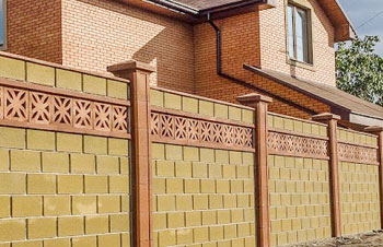 Такие заборы можно изготавливает киевское предприятие СТОУН ТЭК. Работа выполняется быстро и качественно. Внутри домового участка лучше всего положить тротуарную плитку. И тогда, во время дождей он не будет превращаться в болото из грязи. С плитки крайне удобно убирать мусор и листья.
