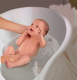 Купание младенца следует проводить в ванночке с теплой водой. Причем, температура воды должна быть строго определенной. Поэтому, лучше заранее запастись термометром для измерения.