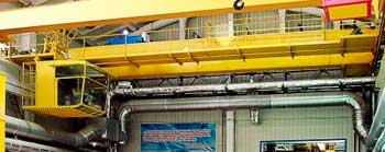 - Краны однобалочные. По всему периметру цеха, под потолком монтируются балки, по которым перемещается кабина крана. Грузоподъемность однобалочных кранов составляет от 500 килограмм до 20 тонн.