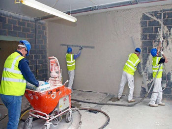 Механический способ штукатурки обеспечивает уменьшение времени отделочных работ, а также повышает качество самой смеси. При ручном режиме работы, раствор теряет свои свойства через час. Это означает, что строитель замешивают раствор небольшими порциями, на которые уходит время. В механическом режиме раствор постоянно перемешивается в баке. Такой способ позволяет раствору глубже проникать в стену. Кроме того, механическое нанесение штукатурки не вызывает перепадов высот и других дефектов, которые обнаруживаются при ручном режиме.