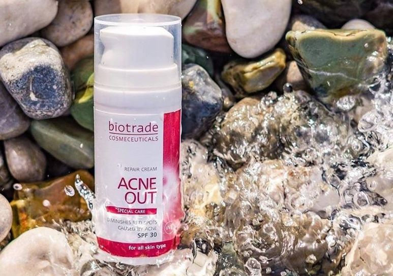 Торговая марка Biotrade предлагает крем Acne Out Repair Cream SPF 30 для жирной кожи склонной к акне. Продукт не только увлажняет эпидермис, восстанавливает работу сальных желез, а и борется с темными пятнами, которые остаются после прыщиков. Чтобы выполнять эти функции, в составе присутствуют олеиновая и гликолиевые кислоты, витамин Е и ниацинамид. Солнцезащитные фильтры предотвращают пигментацию. Средство имеет жирную текстуру, поэтому рекомендуется наносить его тонким слоем. Распределив продукт по всему лицу, можно заметить легкое осветление.
